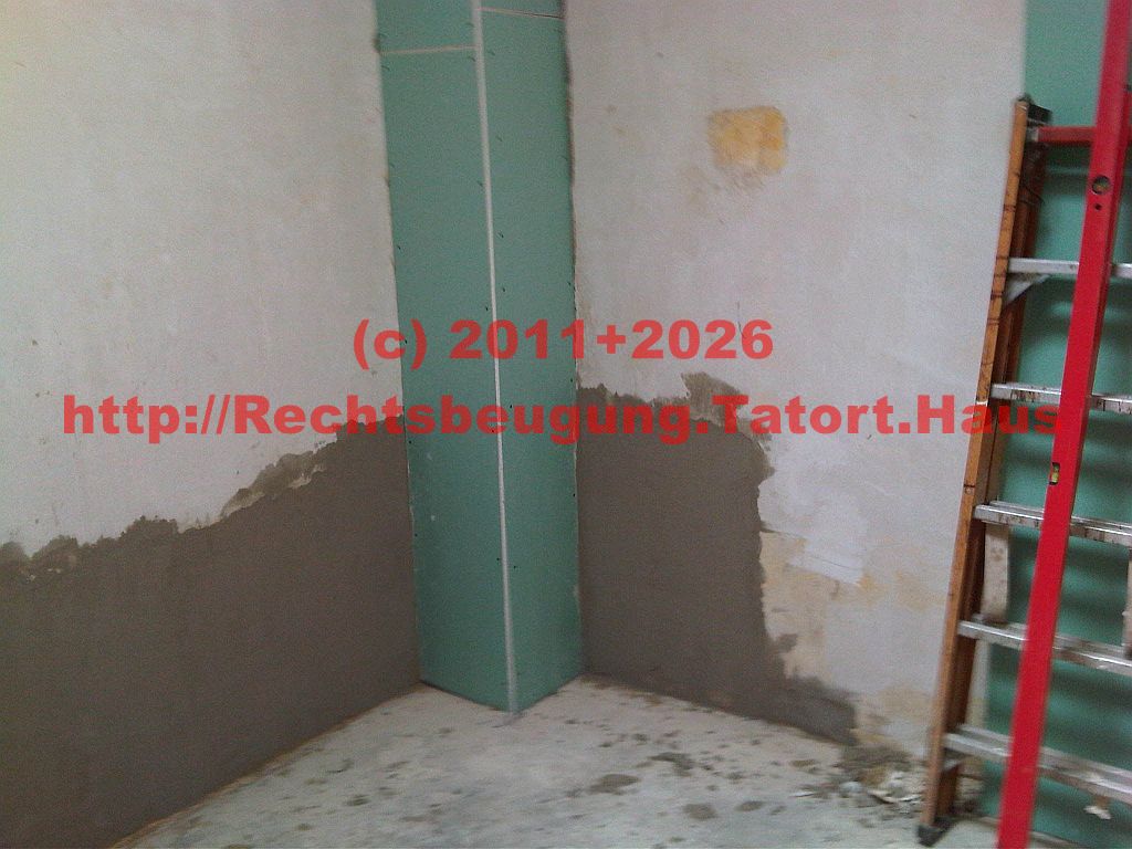 Während der Sanierungsarbeiten – Gewerbe in Wohnimmobilie in den Haupträumen der ehemaligen Wäscherei Czoske – teilt der Ex-Vermieter dem Mieter mit, einen Wasserschaden in der Küche gefunden zu haben, den er behoben hat – eine Falschaussage, wie sich später in 2019 herausstellte, denn er tauschte lediglich die beschimmelte Gipskartonabkofferung samt Ständerwerk und etwas Putz aus, behob jedoch nicht den ursächlichen Wasserschaden am innenliegend Fallrohr der Flachdachentwässerung!“